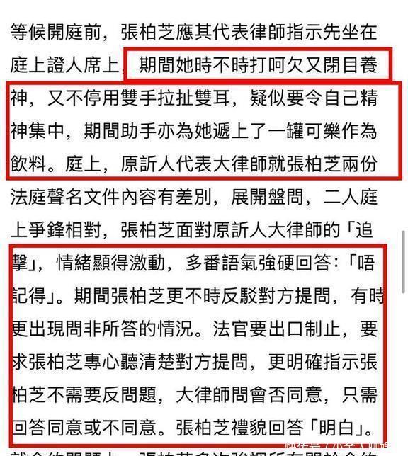 可是开庭之后,情况就全变了。法官问话的时候,张柏芝说话颠三倒四,情绪很激动,甚至有点精神恍惚,控制不住地流眼泪。